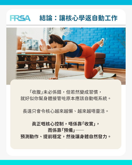 「收腹」本身並非錯誤,但若成為習慣,可能導致核心失去靈活性。真正的核心控制來自於預測動作、提前穩定,然後讓身體自然發揮最佳效能。