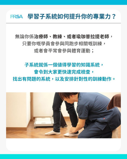 治療師、健身教練、瑜伽或普拉提導師無論你的學員是否參與跑步相關運動或其他體育活動,子系統理論都能幫助你快速檢測問題,精準設計針對性訓練方案。