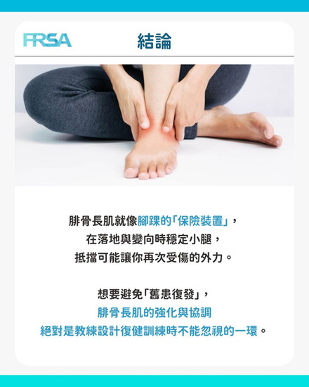 腓骨長肌是腳踝的「保險裝置」,在落地與變向時穩定小腿,抵抗可能導致再次受傷的外力。